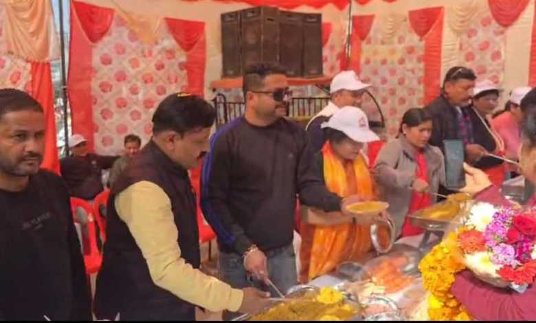 हल्द्वानी : सशक्त एकता उद्योग व्यापार मंडल द्वारा आज कुसुमखेड़ा चौक पर भव्य खिचड़ी भोज का कार्यक्रम आयोजित किया गया। जिसका शुभारंभ प्रदेश अध्यक्ष लाखन सिंह निगल्टिया, सुरेन्द्र नरूला, प्रदेश उपाध्यक्ष श्रीमती सीमा बत्रा जी, प्रदेश संगठन महामंत्री श्री भुवन भट्ट, तेज सिंह कार्की, कोषाध्यक्ष प्रताप जोशी जी, एवं महिला प्रदेश अध्यक्ष ज्योति अवस्थी जी द्वारा किया गया।तथा सभी ने व्यापारी एकजुटता के साथ साथ सामाजिक कार्यक्रम करते रहने का संदेश दिया।इस अवसर पर प्रदेश प्रवक्ता संजय त्यागी, प्रदेश सचिव संजय बिष्ट, प्रदेश सचिव चंदन बिष्ट, प्रदेश सचिव तरूण वानखेड़े, महिला जिलाध्यक्ष कंचन रौतेला, जिला प्रभारी मंजू शाह, मंजू भट्ट, अंजू पांडे, बबीता जोशी, बबीता हलधर, नीता गुप्ता, तरनजीत कौर, रेनू डसीला, रेनू शर्मा, अनिता जोशी, माया तिवारी आदि उपस्थित रहे.