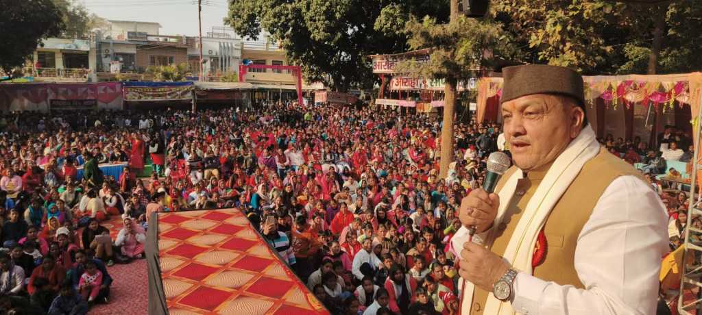 कोटाबाग : गुरुवार को कोटाबाग में आरंभ एक पहल संस्था द्वारा आयोजित उत्तरायणी कौतिक आयोजन में मुख्य अतिथि हल्द्वानी महापौर गजराज सिंह बिष्ट कार्यक्रम में मौजूद रहे। जहां कार्यक्रम में श्वेता मेहरा ने अपने ढाई हाथ धमेली पूजीरे कमरा गानों में लोगों को खूब झुमाया, और लोगों ने खूब डांस किया। तो वही कार्यक्रम में नई दिशा समिति नैनीताल एवं मुनस्यारी डांस ग्रुप द्वारा सुंदर प्रस्तुतियां आयोजित की गई। कार्यक्रम हल्द्वानी महापौर गजराज सिंह बिष्ट ने अपने संबोधन में उत्तरायणी कौतिक के कार्यक्रम आयोजन के लिए आरंभ एक पहल संस्था को बधाई और शुभकामनाएं दी, उन्होंने कहा कि कुमाऊनी कार्यक्रम को लोगों के बीच आज भी लगातार जिंदा रखा है और लोग बढ़-चढ़कर हिस्सा ले रहे हैं। इस दौरान कार्यक्रम में जिला पंचायत सदस्य छवि कांडपाल, अध्यक्ष क्षेत्र पंचायत संगठन दीपा ढ़ोडियाल, ममता वर्मा, चंपा छिमवाल, नवीन छिम्वाल, प्रमोद बोरा, महेंद्र नागर सहित कई अतिथि मौजूद रहे। तो वहीं संस्था के अध्यक्ष राहुल पंत , जितेंद्र बिष्ट, विवेक बधानी, नीरज जोशी, दीपक तिवारी, बृजेश फुलारा, पंकज शाह, सहित कई लोग मौजूद रहे।फोटो —— कोटाबाग उत्तरायण कौतिक में लोगों को संबोधित करते हुए हल्द्वानी महापौर गजराज सिंह बिष्ट।