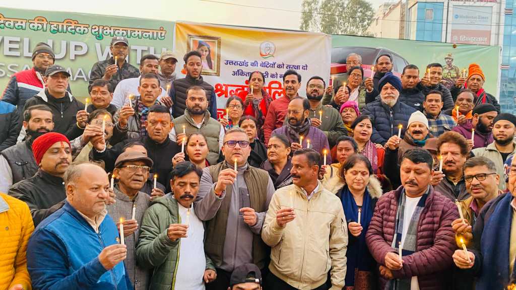 हल्द्वानी : उत्तराखंड की बेटी अंकिता भंडारी को न्याय दिलाने की मांग को लेकर आज हल्द्वानी विधायक सुमित हृदयेश ने कांग्रेसजनों के साथ नैनीताल रोड स्थित झंडा पार्क में मोमबत्ती जलाकर शांतिपूर्ण श्रद्धांजलि अर्पित की। इस दौरान बड़ी संख्या में नागरिकों ने उपस्थित होकर अंकिता को न्याय दिलाने की पुरज़ोर मांग की।सुमित हृदयेश ने कहा कि यह अत्यंत दुखद, पीड़ादायक और दुर्भाग्यपूर्ण है कि इतने लंबे समय बाद भी इस जघन्य हत्याकांड में शामिल वीआईपी का नाम अब तक सार्वजनिक नहीं किया गया। यह मामला केवल अंकिता के साथ हुए अन्याय तक सीमित नहीं है, बल्कि यह हमारी न्याय व्यवस्था की पारदर्शिता और कार्यप्रणाली पर भी गंभीर सवाल खड़े करता है।उन्होंने स्पष्ट शब्दों में मांग की कि इस पूरे प्रकरण की CBI से निष्पक्ष जांच कराई जाए, ताकि सच्चाई सामने आ सके और दोषियों को उनके अपराध की कठोर से कठोर सजा मिले।श्री सुमित हृदयेश ने कहा कि जब तक अंकिता को न्याय नहीं मिलेगा, तब तक हमारी यह आवाज़ बुलंद रहती रहेगी। इस दौरान जिलाध्यक्ष राहुल छिमवाल, महानगर अध्यक्ष गोविंद सिंह बिष्ट, हेमंत बगड़वाल, हरीश मेहता, अवध बिहारी शर्मा, दीप पाठक, बहादुर सिंह बिष्ट, जया कर्नाटक, भगवती जोशी, चम्पा चिलवल, राधा आर्य, रवि जोशी, मयंक भट्ट, सुहैल अहमद सिद्दीकी, सतनाम सिंह, मलय बिष्ट, जीवन कार्की सहित अन्य कांग्रेसजन मौजूद रहे।
