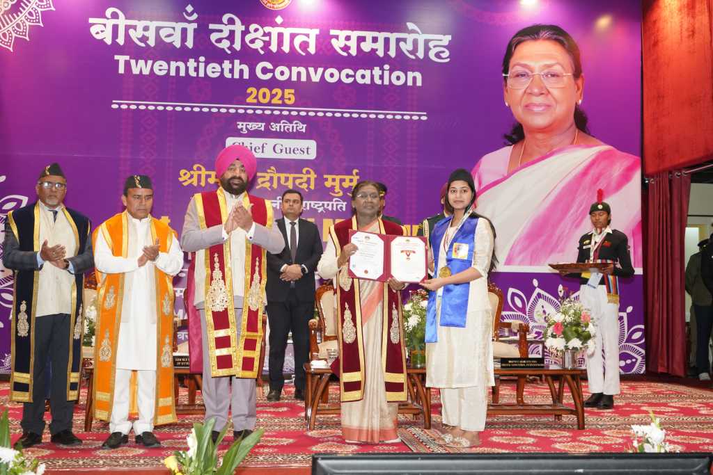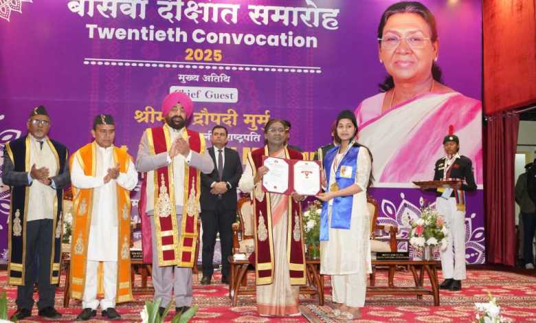 नैनीताल : कुमाऊँ विश्वविद्यालय, नैनीताल का 20वाँ दीक्षांत समारोह आज विश्वविद्यालय के ए.एन. सिंह सभागार, डी.एस.बी. परिसर में अत्यंत गरिमामय एवं प्रेरणादायक वातावरण में सम्पन्न हुआ। समारोह की मुख्य अतिथि भारत की माननीय राष्ट्रपति श्रीमती द्रौपदी मुर्मू रहीं, जबकि कार्यक्रम की अध्यक्षता उत्तराखण्ड के माननीय राज्यपाल एवं विश्वविद्यालय की कुलाधिपति लेफ्टिनेंट जनरल गुरमीत सिंह (सेनि.) ने की। इस अवसर पर राज्य के माननीय उच्च शिक्षा मंत्री डॉ. धन सिंह रावत, कुलपति प्रो. दिवान सिंह रावत उपस्थित रहे।अपने प्रेरक उद्बोधन में भारत की माननीय राष्ट्रपति श्रीमती द्रौपदी मुर्मू ने कहा कि “शिक्षा केवल डिग्री प्राप्त करने का माध्यम नहीं है, बल्कि यह जीवन को दिशा देने वाली एक सतत साधना है।” उन्होंने कहा कि शिक्षा का उद्देश्य केवल रोजगार प्राप्त करना नहीं, बल्कि व्यक्ति के भीतर मानवीय संवेदनाओं, नैतिक मूल्यों और समाज के प्रति उत्तरदायित्व की भावना को जागृत करना है।माननीय राष्ट्रपति महोदया ने कहा कि हिमालय की गोद में स्थित कुमाऊँ विश्वविद्यालय न केवल उच्च शिक्षा का केंद्र है, बल्कि यह ज्ञान, संस्कृति और पर्यावरण चेतना का संगम भी है। उन्होंने कहा कि विश्वविद्यालय ने पर्यावरण संरक्षण, जैव विविधता, पर्वतीय कृषि, महिला सशक्तिकरण और सतत विकास के क्षेत्र में जिस प्रकार कार्य किया है, वह पूरे देश के लिए एक आदर्श उदाहरण है।उन्होंने विद्यार्थियों से कहा कि वे अपने जीवन में सत्य, करुणा और ईमानदारी को आधार बनाएं तथा “विकसित भारत@2047” के संकल्प को साकार करने में सक्रिय भूमिका निभाएँ। उन्होंने यह भी कहा कि आने वाले वर्षों में भारत को विश्वगुरु बनाने में युवाओं की भूमिका सबसे महत्वपूर्ण होगी।
