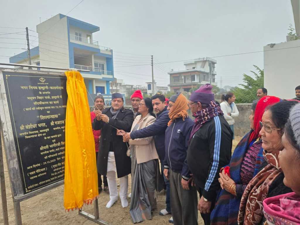 हल्द्वानी महापौर गजराज बिष्ट ने बताया कि नगर निगम के द्वारा शासन को विभिन्न पार्क के कार्य एवं निर्माण हेतु प्रस्ताव दिया गया था।जिसके लिये शासन ने 1285 लाख की स्वीकृति प्रदान की पूर्व में 6 पार्कों का कार्य प्रारंभ कर दिया गया है उसी क्रम में आज वार्ड 52 में रुप नगर और वार्ड 56 में मधुवन विहार के पार्कों का शिलान्यास किया।पार्क में निगम द्वारा ओपन जिम, बच्चों के खेल-कूद के उपकरण, मैदान का सौंदर्य आदि कार्य किया जायेगा। हम केंद्र राज्य सरकार के सहयोग से शहर के विकास के लिये निरंतर अग्रसर है।शिलान्यास में पूर्व जिलाध्यक्ष प्रदीप बिष्ट, पार्षद 52 श्रीमती रेखा बिनवाल , पार्षद 56 श्रीमती भागीरथी बिष्ट, शक्ति केंद्र संयोजक पूरन चन्द्र जोशी, बृजमोहन कोहली , बूथ अध्यक्ष दीपक जोशी , ज्ञान सिंह नेगी, सहायक अभियंता नवल नौटियाल , विजय बड़मोला , समेत क्षेत्रवासी उपस्थित रहे।