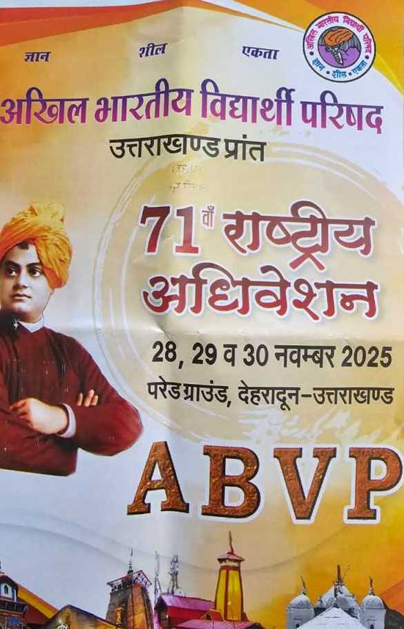 देहरादून : अखिल भारतीय विद्यार्थी परिषद का राष्ट्रीय सम्मेलन राजधानी देहरादून में होने जा रहा है। 28 से 30 नवंबर को होने वाले इस सम्मेलन की तैयारियां परेड ग्राउंड में शुरू हो गई है।एबीवीपी के राष्ट्रीय सम्मेलन में मुख्यमंत्री पुष्कर सिंह धामी भी शिरकत करेंगे।राष्ट्रीय स्वयंसेवक संघ के विद्यार्थियों के बीच काम करने वाले अखिल भारतीय विद्यार्थी परिषद का ये 71 वाँ राष्ट्रीय सम्मेलन है। विद्यार्थी परिषद के सदस्य रहे अनेकों विद्यार्थी ,राजनीतिक क्षेत्र में शीर्ष पदों पर विराजमान है जिनमें उत्तराखंड के मुख्यमंत्री पुष्कर सिंह धामी सहित अन्य राज्यों के मुख्यमंत्रियों के नाम भी शामिल है।