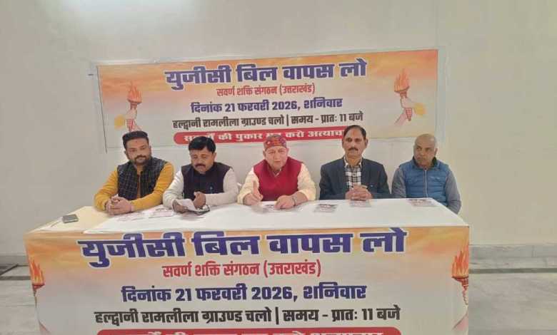 हल्द्वानी : हल्द्वानी में यूजीसी बिल के खिलाफ हल्द्वानी में विरोध की आवाज़ हुए । स्वर्ण शक्ति संगठन ने बिल के खिलाफ मोर्चा खोलते हुए 21 फरवरी को बड़े आंदोलन की घोषणा की है। प्रेस वार्ता कर संगठन के संयोजक प्रकाश हरबोला ने प्रेस कांफ्रेंस कर आंदोलन की रूपरेखा साझा की। प्रकाश हरबोला ने कहा कि प्रस्तावित यूजीसी बिल के प्रावधान स्वर्ण समाज के हितों के प्रतिकूल हैं। उन्होंने आरोप लगाया कि सरकार द्वारा लाया गया यह विधेयक सामाजिक संतुलन को प्रभावित कर सकता है। संगठन ने “स्वर्णों की पुकार, मत करो अत्याचार” के नारे के साथ अपने अभियान की शुरुआत की है। संगठन की ओर से बताया गया कि 21 फरवरी को हल्द्वानी के रामलीला ग्राउंड से एक विशाल रैली निकाली जाएगी, जो शहर के प्रमुख मार्गों से होते हुए जिलाधिकारी कार्यालय तक पहुंचेगी। वहां प्रदर्शनकारी जिलाधिकारी के माध्यम से केंद्र सरकार को ज्ञापन सौंपेंगे और यूजीसी बिल को वापस लेने की मांग करेंगे। इस आंदोलन को व्यापार मंडल, विभिन्न सामाजिक संगठनों, पूर्व सैनिकों, ओल्ड पेंशनर्स, पंजाबी सभा, अग्रवाल सभा तथा छात्रसंघ का भी समर्थन मिलने की बात कही गई है। आयोजकों का दावा है कि बड़ी संख्या में लोग इस रैली में शामिल होंगे। संगठन ने केंद्र सरकार से मांग की है कि जनभावनाओं का सम्मान करते हुए यूजीसी बिल को तत्काल प्रभाव से वापस लिया जाए। वहीं, प्रशासन ने भी स्थिति पर नजर बनाए रखने की बात कही है।